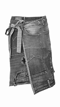 Prozračna reciklirana bluzica od pamučne tkanine i viskoznog žerseja s elastinom. Široki kroj, s duljim vezalicama koje možete vezati sprijeda ili straga. Blago spuštenih ramena. Dugačka oko 60 cm, mjereno od ramena, u raspuštenom obliku. Kad se veže, skrati se za 5-6 cm. Obrubi nestašno čupavi.