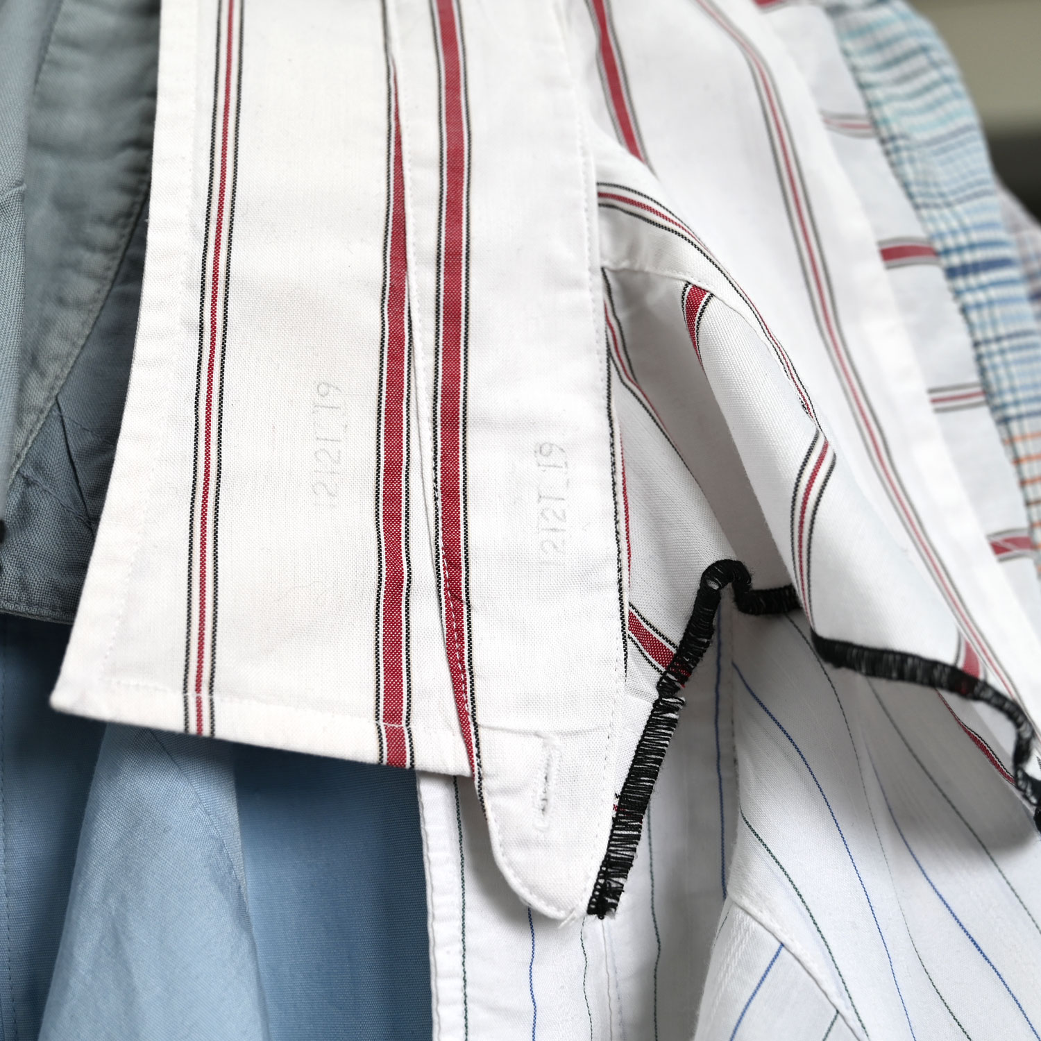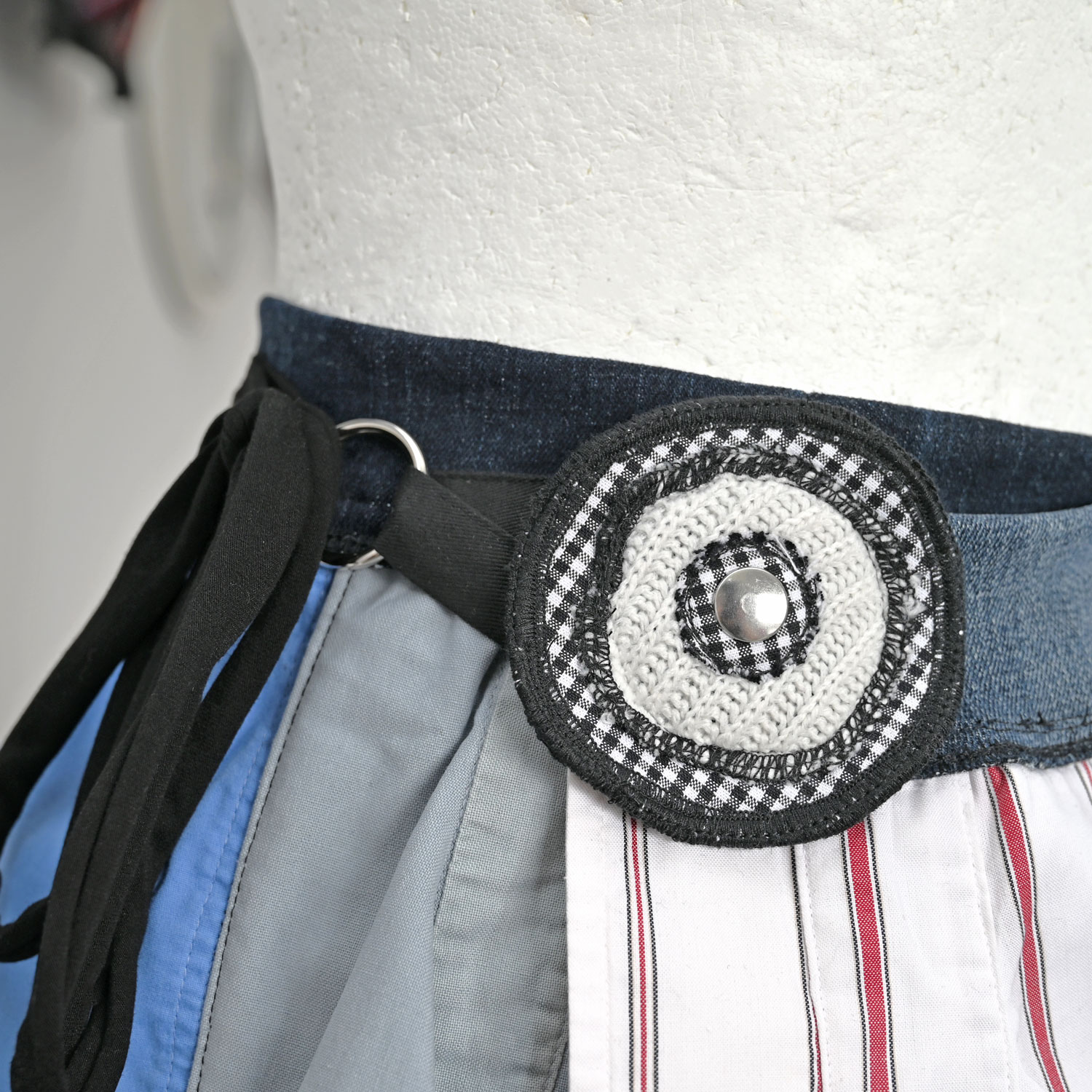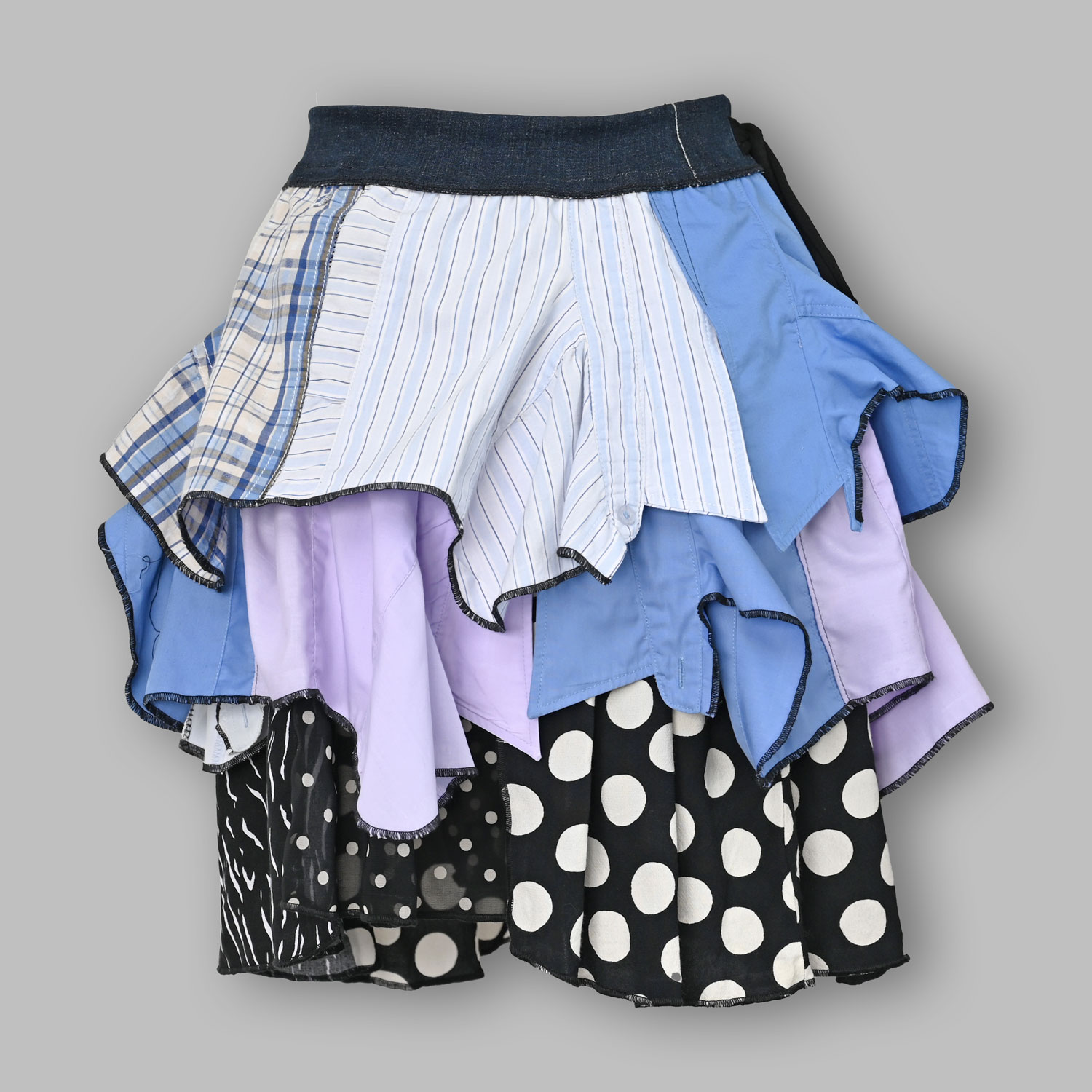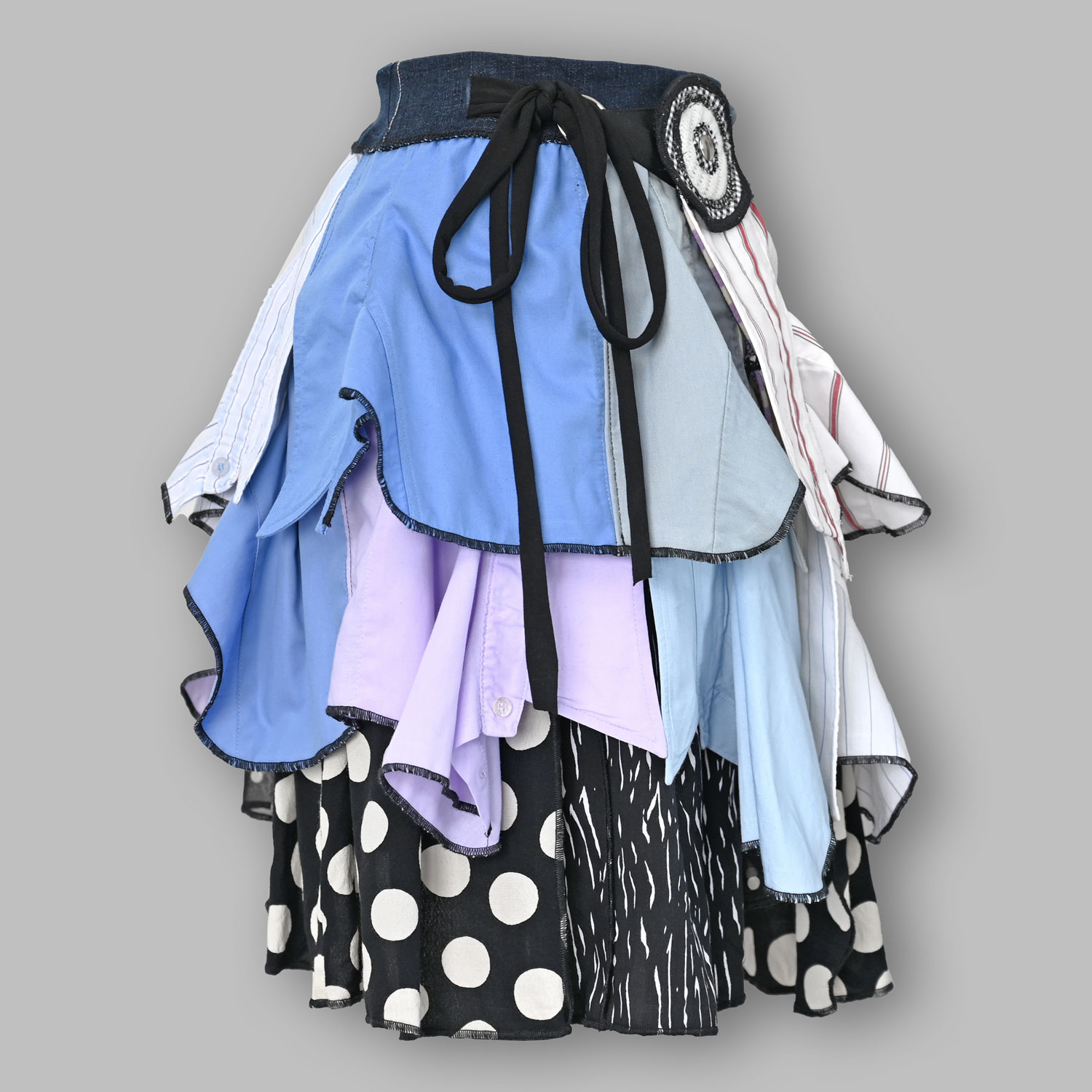 Suknja od ovratnika muških pamučnih košulja, 100% nadciklirana. S podesivim preklopom (suknja je dvobroj). Sašivena u dva primjerka.