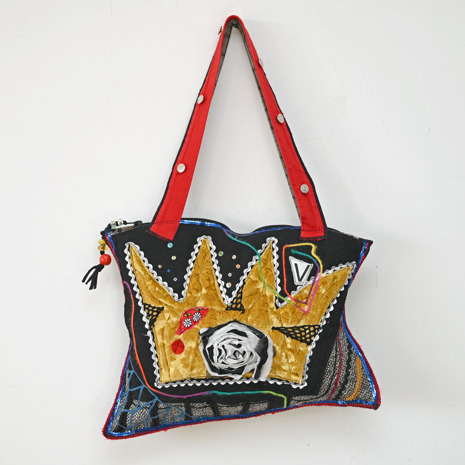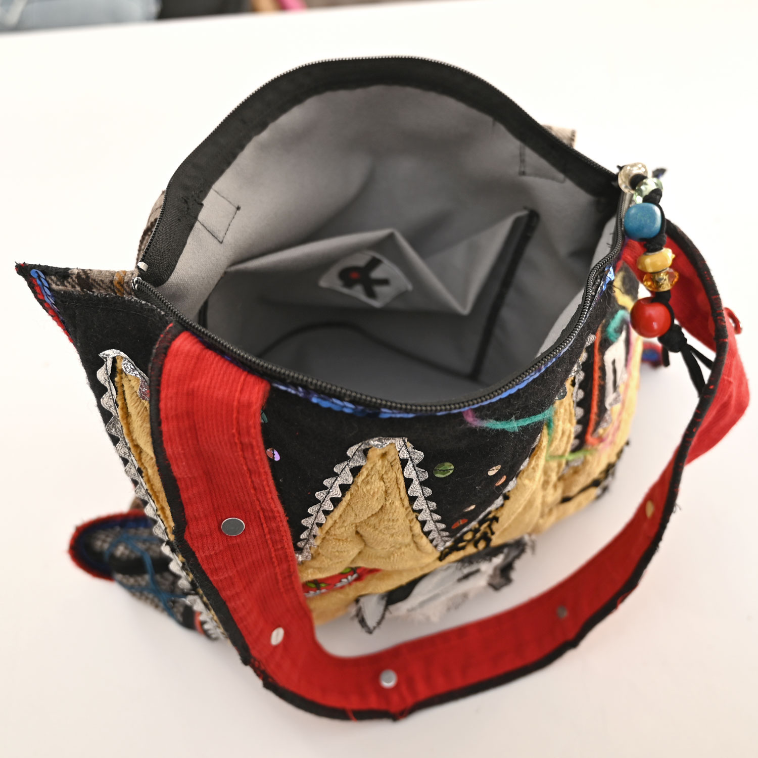 Torba od nadcikliranih tkanina, preko 90% prirodnog sastava. S bucmastom aplikacijom, unutarnjim džepom i patent-zatvaračem.